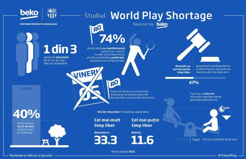 Timpul de joacă al copiilor este și el afectat de viețile aglomerate ale părinților, 40% dintre părinții intervievați au declarat că în ultimul an nu și-au dus copilul în parc să se joace. Săptămânal, copiii au cu trei ore mai puțin timp liber (21 ore) în comparație cu generația părinților lor (24 de ore), echivalentul a două meciuri de fotbal de 90 de minute.