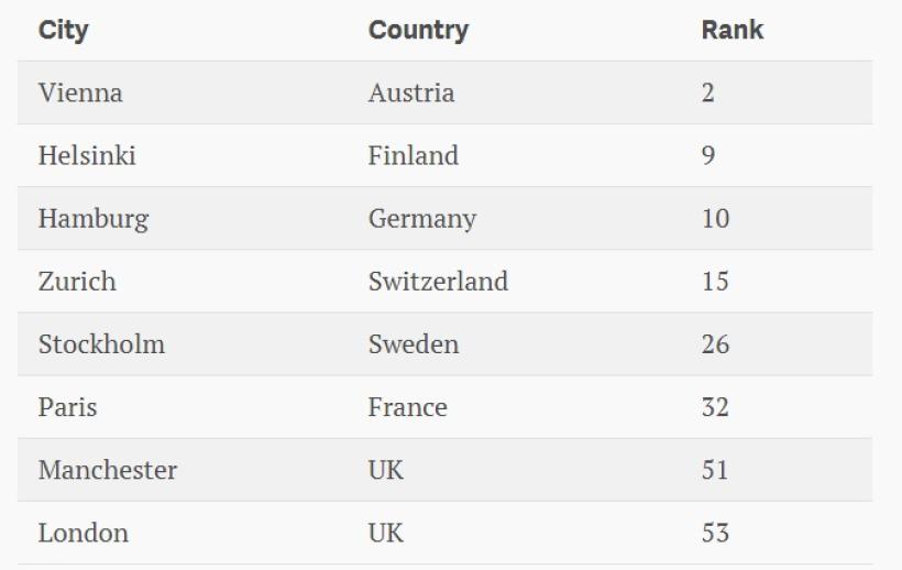 Acesta adună 140 de oraşe din toată lumea şi le clasifică în funcţie de condiţiile de trai, scrie Quartz.