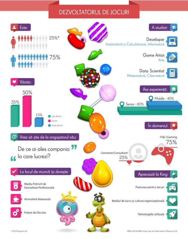 „În ultimele luni au venit din ce în ce mai multe femei la interviuri, procentul lor ajungând la 25%, ceea ce arată că industria jocurilor nu mai este un domeniu exclusiv masculin”, a declarat Mihai Sfrijan, Head of Studio King Bucureşti.