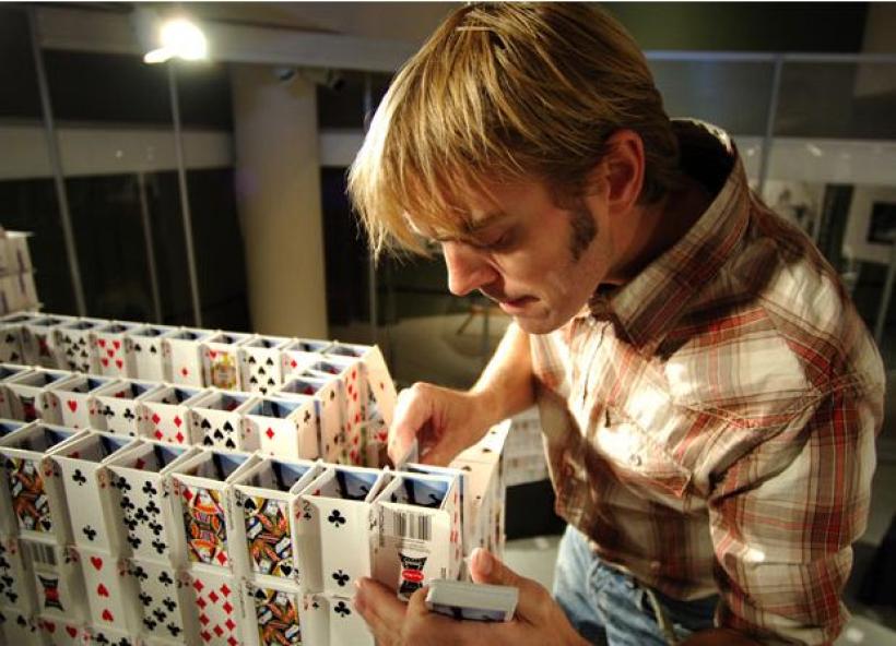 Ateneul Român, Palatul Parlamentului și Plaza Romania sunt cele trei clădiri pe care Bryan Berg le va construi din cărți de joc, într-un spațiu special amenajat în incinta centrului comercial. Clădirile vor fi realizate din 1.200 de pachete, respectiv 64.800 de cărți de joc. Berg nu va utiliza niciun fel de lipici, clei sau bandă adezivă, doar măiestrie clasică și design de mare efect. Pe 24 mai, acestea vor fi „demolate” într-o clipită, pentru a arăta că la mijloc nu este niciun truc.