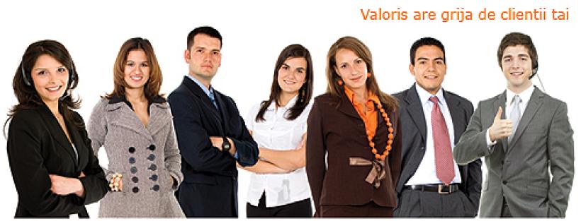 Suntem o companie cu capital 100% românesc, care oferă servicii profesionale de call center. Construim și dezvoltăm servicii de încredere, competitive și profesionale de Contact Center (Inbound și Outbound). Experiența dovedită, serviciile de calitate, responsabilitatea și profesionalismul sunt atuurile noastre. Principala preocupare este clientul, iar rezultatele pe care le aducem sunt: optimizarea costurilor, creșterea vânzărilor, fidelizarea clienților, o îmbunătățire aimaginii pe piață prin promovarea unei atitudini orientată spre client, într-un cuvânt excelență în relațiile cu clienții. Printre clienții Valoris se număra companii de top din domeniile: financiar-bancar, leasing, auto, retail, IT, telecom, energie s.a.