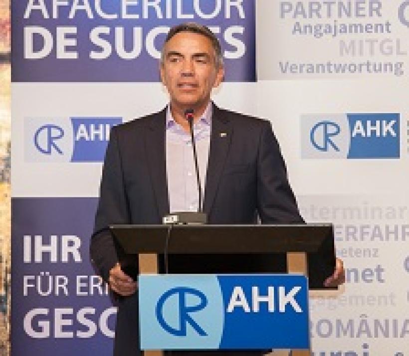 "Lipsa forței de muncă din România este o problemă uriașă care ne înfrânează dezvoltarea. În acest sens, la propunerea Camerei am înființat un grup de lucru interministerial pentru forța de muncă, cu patru sau cinci ministere reprezentate, printre care Ministerul Muncii, Ministerul de Externe, cel de Interne și al Educației, pentru că este vorba de forța de muncă din România, despre măsuri care trebuie luate pe termen scurt, mediu și lung. Noi conducem acest grup de lucru și ne bazăm pe inputurile din partea voastră. Măsurile trebuie să ducă la creșterea numerică și calitativă a forței de muncă, dar și din perspectiva mentalității. Educația se face pe termen mediu și lung. Pe termen scurt îi vedem pe străini ca pe un sprijin. De asemenea poate fi un sprijin dacă studenții fac stagii de practică ma lungi nu așa cum fac acum de 3 săptămâni. În industria turismului dacă din 2 semestre unul ar fi de practică, acesta ar fi un ajutor", a mai arătat președintele AHK România.