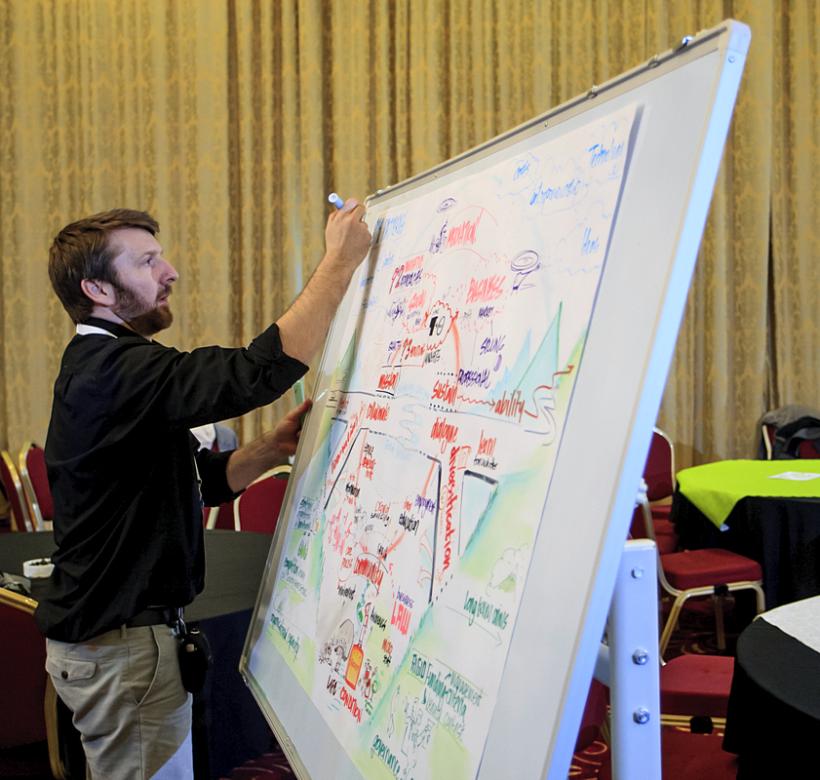 Nick Payne este un facilitator grafic cu peste nouă ani de experiență, timp în care a fost invitat printre altele la TEDxBrussels, Parlamentul European, Comisia Europeană, iar în această primăvară Nick a fost prezent în România, la conferința Connection unde rezultatele sale și a echipei pe care a condus-o au fost apreciate de toți participanții.