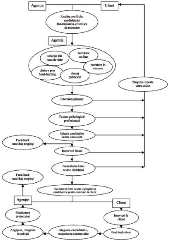 - Interviuri si negocieri la client pentru alegerea viitorului angajat si angajarea acestuia.