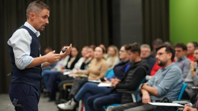 Vom face exact ce-i place cel mai mult lui Andrei. Vom vorbi… despre voce și discurs, despre arta de a ține auditoriul captiv în povestea ta, dar și despre acea voce interioară care te ghidează și te motivează să-ți depășești limitele.