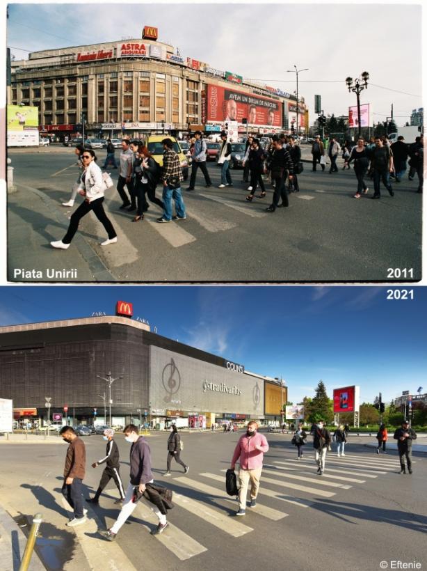 În urmă cu câteva luni, căutam o imagine reprezentativă pentru București. Și, din aproape în aproape, am ajuns la un articol în care vorbeai despre un proiect ce mi s-a părut extrem de interesant - o comparație a imaginii urbane a Bucureștiului 2011/2021. Cum ai regăsit Bucureștiul după 10 ani? Ce te-a impresionat cel mai mult atunci când ai tras concluziile?