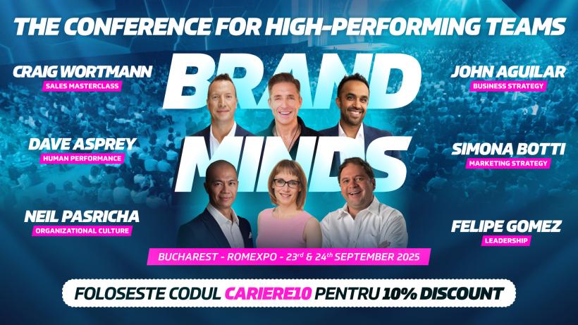 Pentru că faci parte din comunitatea Revista Cariere, folosește codul de discount Cariere10 și beneficiezi de un cod de discount de 10% la BRAND MINDS.