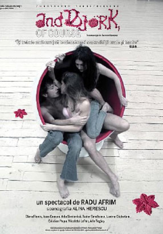 Sase personaje care isi cauta rostul in viata se inscriu la un workshop si incep o calatorie pentru autodescoperire, descoperire de noi orizonturi si dragoste. Pe scurt, "And Bjork of course..." este o introspectie profunda si comica a principiilor terapiei de grup, o piesa cu si despre oameni obisnuiti, pusi sa actioneze in situatii neobisnuite si invers. Din distributie fac parte: Clara Flores, Ioan Coman, Ada Simionica, Tudor Smoleanu, Lorena Ciubotaru, Cristian Popa, Nicoleta Lefter si Alin Teglas. Scenografia ii apartine Alinei Herescu.