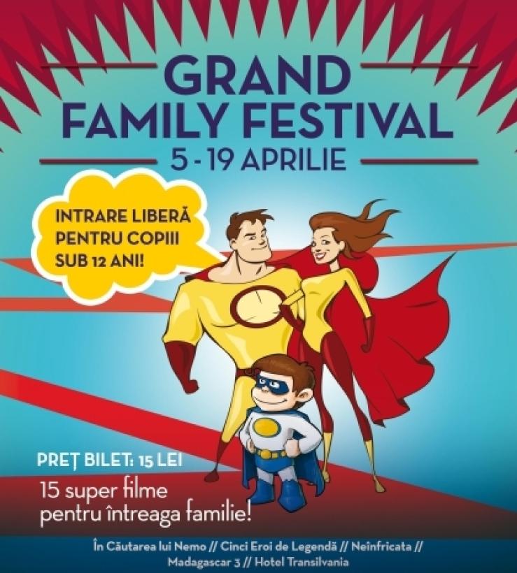 În cadrul Grand Family Festival vor fi prezentate cele mai îndrăgite filme de animație și aventuri care au rulat în ultimii ani. Vor fi proiectate 15 filme, printre care titluri de succes la box-office, îndrăgite atât de copii cât și de părinți: 10 filme de animație precum “Madagascar 3: Fugăriți prin Europa”, “În căutarea lui Nemo” sau “Hotel Transilvania” și 5 filme artistice de aventuri, printre care “Grozavul și Puternicul Oz” sau “Uimitorul Om Păianjen”.
