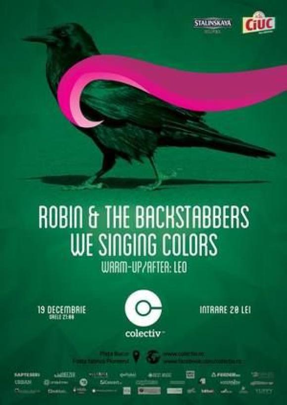 Robin & The Backstabbers nu cântă singuri, c-aşa sunt ei: generoşi şi puşi pe glume. Acesta este şi motivul imensului succes pe care-l au. De data asta vor cânta cu We Singing Colors şi Leo (Warm-up & after).