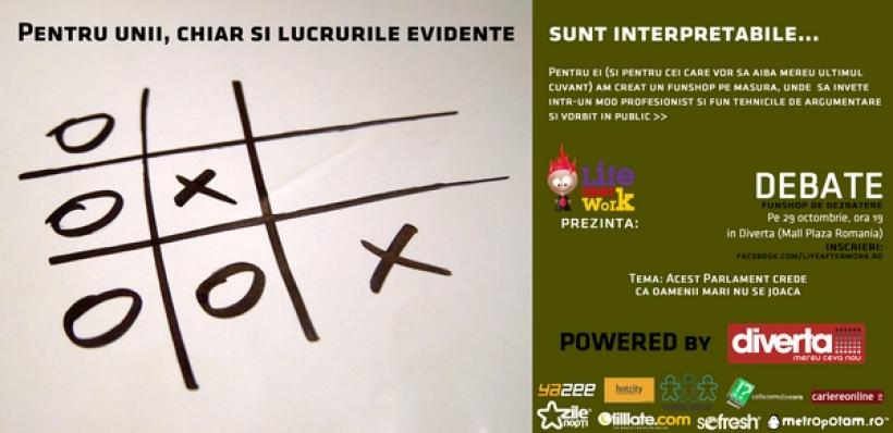 Vrei sa poti avea un schimb academic de idei chiar si in fata a 200 de oameni? Atunci „Debate”-ul organizat vineri, 29 octombrie, la Diverta din Mall Plaza, sustinut de trainerii Emi Beteringhe si Alex Gheorghe, este exact ceea ce o cauti: un cadru unde primeaza cultura generala, bunul simt si dezvoltarea abilitatilor de prezentare.