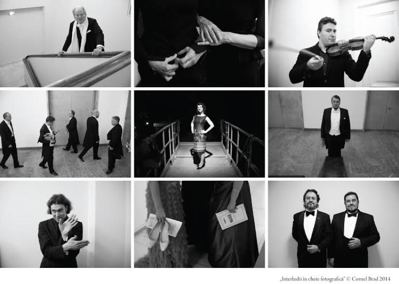 Titlul „Interludii” relevă cititorului plasarea în timp a actului fotografic, în momentele de pauză dintre repetiţiile şi spectacolele artiştilor, în principal în culisele sălilor de spectacol.Fotografiile, în serie limitată de 10 sau 20, pot fi achiziţionate de iubitorii de muzică şi artă la NeoGalateca.