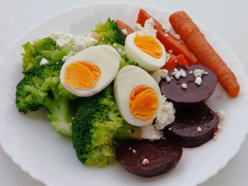 Oul furnizează proteine de calitate, esențiale pentru menținerea masei musculare și a sațietății. Prepararea unei omlete durează doar câteva minute, iar legumele adăugate aduc fibre și antioxidanți.