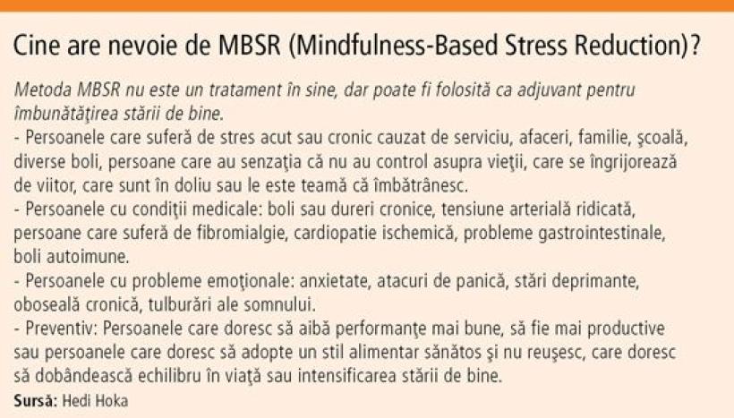 „Mindfulness este o modalitate de autoeducare a conştiinţei pentru a dezvolta autonomia personală şi spiritul colaborativ, pentru a fi fericiţi şi de folos celorlalţi”, explică și Daniela Andreescu, coach, facilitator și autor. Iar Hedi Hoka, doctor în psihologie și autor, care a studiat despre mindfulness în SUA, precizează că aceasta este o tehnică eficientă în reducerea stresului, în condițiile în care percepția noastră față de stres ne poate îmbolnăvi. „Ani de zile psihologia a privit stresul ca pe un dușman. Dar putem să-l transformăm și într-un aliat.”