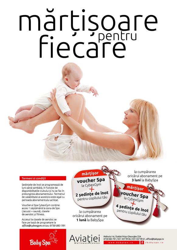 Dacă vrei să te bucuri de o primăvară şi mai îmbelşugată, atunci alege orice abonament pe 3 luni la Baby Spa şi vei primi un voucher spa la Cybex Gym și 4 şedinţe de înot.