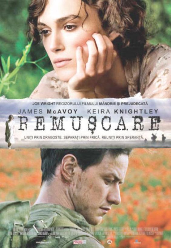 In luna februarie in cinematografe este programata premiera filmului "Atonement" (Remuscare), regizat de Joe Wright. Filmul a fost prezentat in avanpremiera in cadrul festivalului Dakino si a starnit ropote de aplauze, zambete si pe ici, pe colo, lacrimi... "Atonement" prezinta povestea impresionanta de dragoste dintre Robbie si Cecilia, respectiv Keira Knightley si James McAvoy. Intriga actiunii este declansata de mezina Brionny, care il acuza pe Robbie de o crima pe care acesta nu a comis-o. Marturisesc ca am vizionat acest film si nu mi-am dat seama cum au trecut minutele... Am fost prinsa in mreje de poveste si dialoguri, de frumusetea personajelor si feminitatea Keirei Knightley, de efectele subtile produse de camera de luat vederi... de sunetul masinii de scris, care accentua obsesiv anumite momente din film. "Atonement" s-a inscris in cursa pentru Oscar si multi critici si-au exprimat public increderea pe care o au in reusita acestui film.