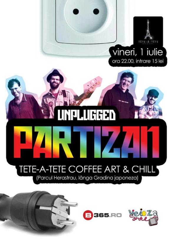 Partizan ne invita la un concert unplugged, vineri, 1 iulie, pe terasa Tete-a-Tete din Parcul Herastrau (langa Gradina Japoneza), incepand cu ora 22.oo. Biletul costa 15 lei. Astazi, Partizan inseamna Adrian Plesca (Artan) - voce; Razvan Moldovan (Suedezu) - chitara, groove box; Andrei Robin Proca - bas; Radu Tiberiu Moldovan – tobe. Sambata, in aceeasi locatie dintre Gradina Japoneza si rampa de skate va fi un concert cu intrare libera sustinut de Compania 7