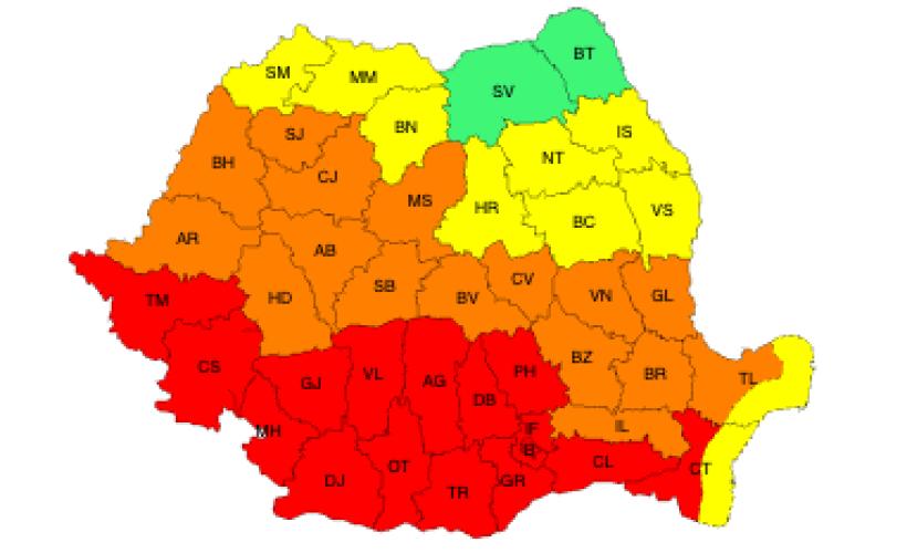 Singurele județe fără avertizare de caniculă sunt Suceava și Botoșani.