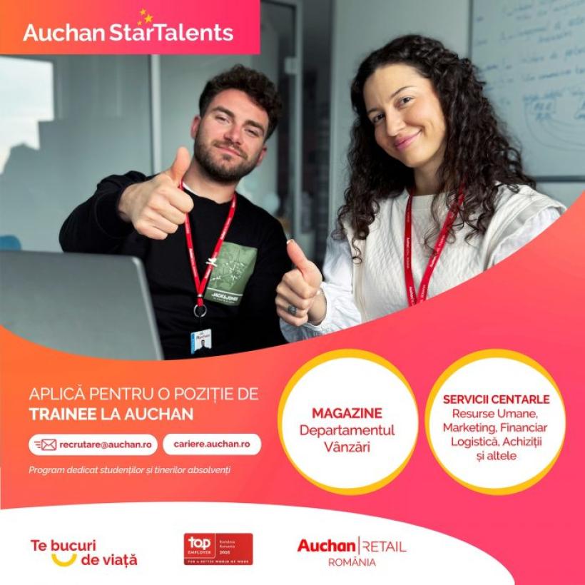 Auchan Retail România lansează o nouă ediție a programului Trainee, un parcurs accelerat de șase luni dedicat tinerilor pasionați, curioși și dornici să-și construiască o carieră în retail. Studenții aflați în ultimul an și masteranzii au ocazia să descopere compania, să înțeleagă principalele departamente și procese organizaționale, să se specializeze într-un anumit domeniu și să se pregătească pentru un rol de începător într-unul dintre departamentele Auchan, precum Marketing, Logistică, IT, Achiziții, Vânzări, HR.