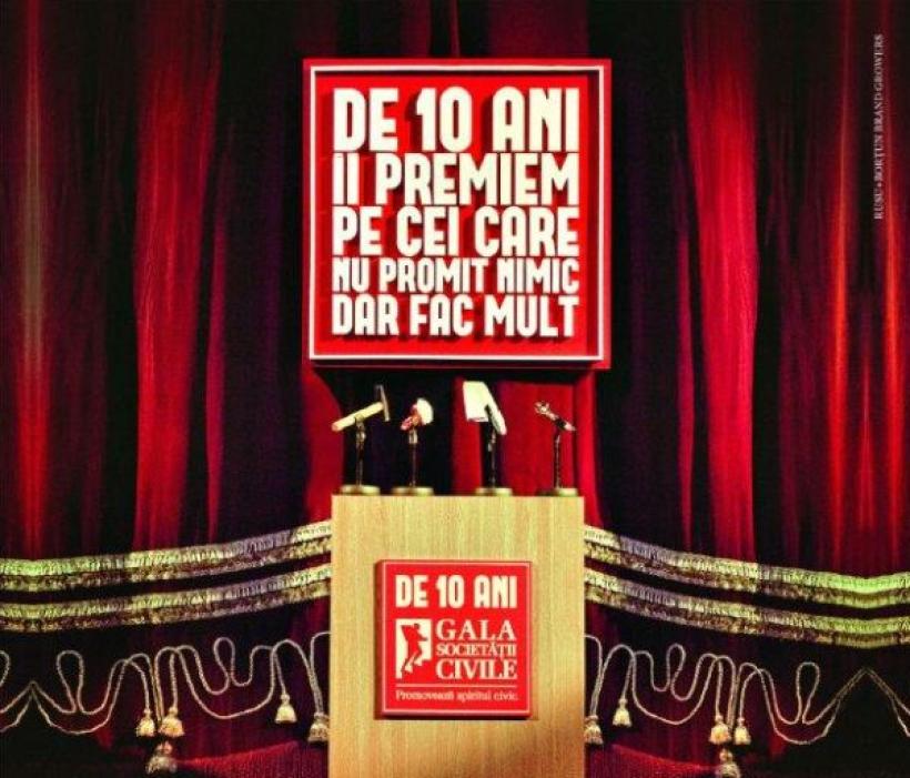Ajunsă la cea de-a zecea ediţie, Gala Societăţii Civile găzduieşte astăzi: