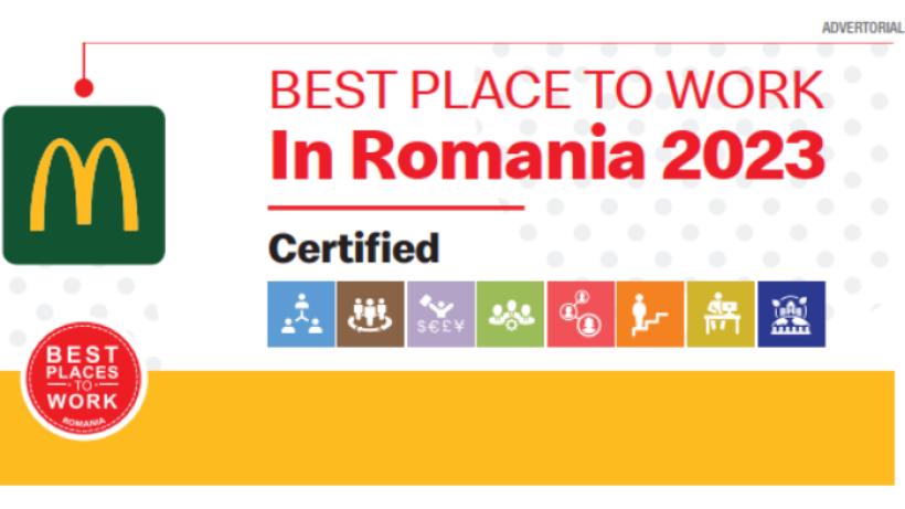 McDonald’s a primit recent certificarea „Best Place to Work” în România, o distincție acordată de autoritatea globală independentă „Best Places to Work” Program. Această certificare reprezintă o recunoaștere a angajamentului companiei față de cei peste 5.400 de angajați, ce ține de calitatea mediului de lucru, cultura organizațională a companiei, precum și a oportunităților de dezvoltare profesională oferite acestora.