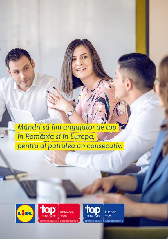 Lidl România obține certificarea Top Employer 2020, cel mai mare scor fiind obținut de companie la capitolul Leadership & Development – 93%, reflectând performanțele companiei în ceea ce privește condițiile de lucru și oportunitățile de dezvoltare profesională oferite angajaților. Certificarea este obținută pentru al patrulea an consecutiv și este acordată de către institutul independent Top Employers din Olanda. În plus, și anul acesta, Lidl a obținut această certificare și la nivel european.