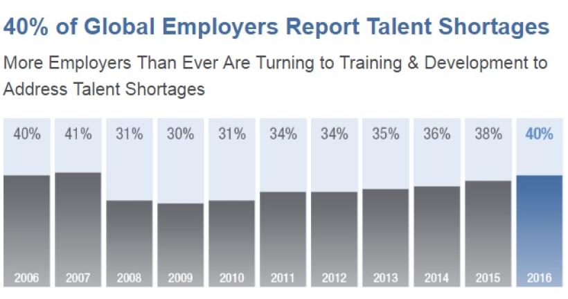 La nivel global, 40% din cei 42.000 de angajatori chestionați au recunoscut că întâmpină dificultăți în recrutarea de personal calificat. În topul țărilor cu personal subcalificat, România este situată pe locul 3, cu un procent de 72%, după Japonia, 86% și Taiwan, 73%.