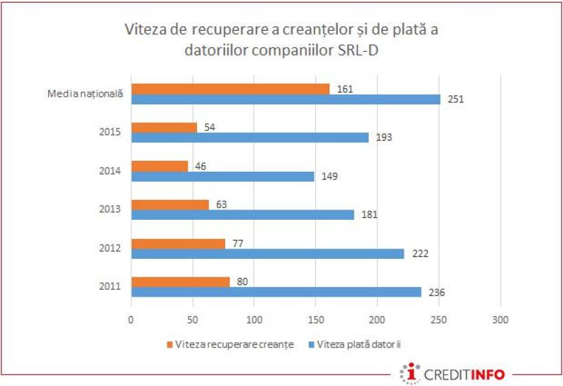O caracteristică a companiilor SRL-D este aceea că înregistrează viteze de recuperare a creanțelor și de plată a datoriilor mai mari decât media națională, iar tendința este crescătoare. Astfel, în anul 2011, viteza de recuperare a creanțelor era de 80 de zile, iar cea de plată a datoriilor era de 236 de zile. La nivelul anului 2015 cifrele erau chiar mai bune: viteza de recuperare a creanțelor, în cazul SRL-D era de 54 de zile, iar cea de plată a datoriilor de 193 de zile. Media națională, care ia în calcul toate companiile din România, este de 161 de zile pentru recuperarea creanțelor și de 251 de zile pentru plata datoriilor.