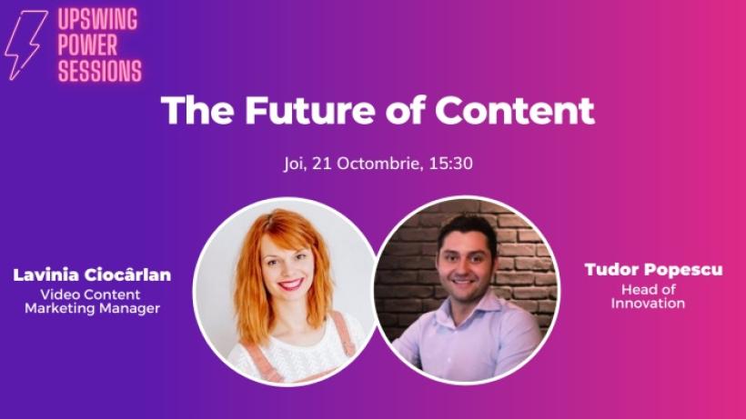 Upswing, Agenție de SEO și Content Marketing îți dă întâlnire joi, 21 octombrie, de la 15:30 exclusiv online pentru a-ți prezenta cele mai noi oportunități din Content marketing, în cadrul Upswing Power Sessions - The Future Of Content. Vei afla despre SEO pentru YouTube, despre cum pot fi identificate