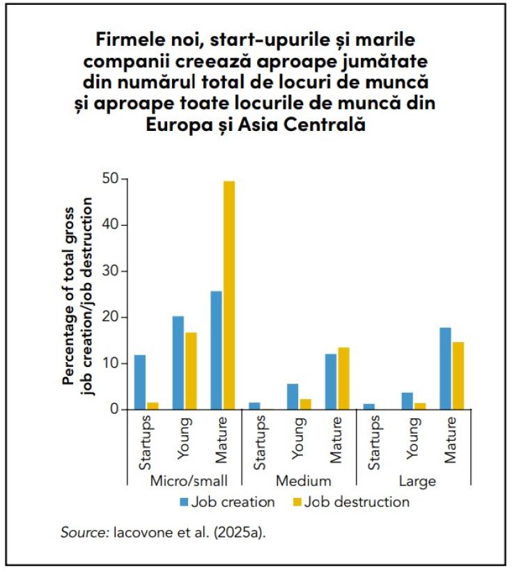 Raportul arată că, deși reprezintă doar 14% dintre angajatori în regiunea ECA, firmele noi, dinamice, au creat în realitate 40% din totalul locurilor de muncă în perioada analizată. Acesta este un lucru pozitiv, de la care țările care fac obiectul acestei analize pot construi în continuare. Cum? Prin politici de sprijin care să susțină finanțarea sectorului privat, investiții în capitaluri proprii, garanții și asigurări împotriva riscurilor politice.