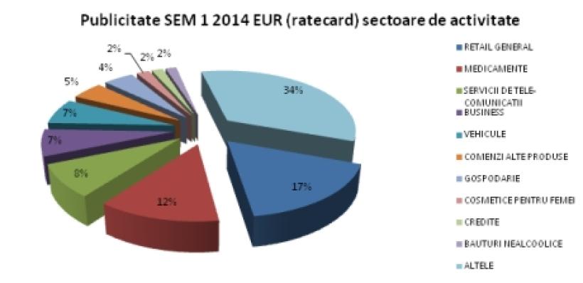 Fața de semestrul II din 2013, în semestrul I din 2014, sectoarele de activitate au evoluții diferite. Pentru retail, medicamente și băuturi nealcoolice avem creșteri semnificative, în timp ce serviciile de telecomunicații înregistrează o scădere de aproximativ 32%, creditele bancare - 33%, iar magazinele pentru gospodărie - aproximativ 13%.