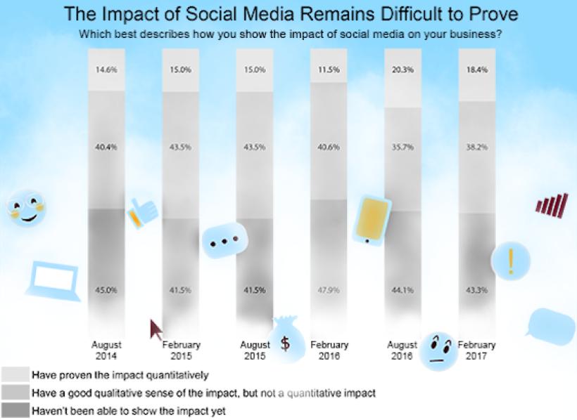 43% dintre respondenți au declarat în cadrul sondajului CMO că nu au reușit să arate impactul social media asupra afacerilor lor. La urma urmei, poate fi dificil să identificați o legătură directă între un chat social media despre un produs cu achiziția efectivă a acelui produs.