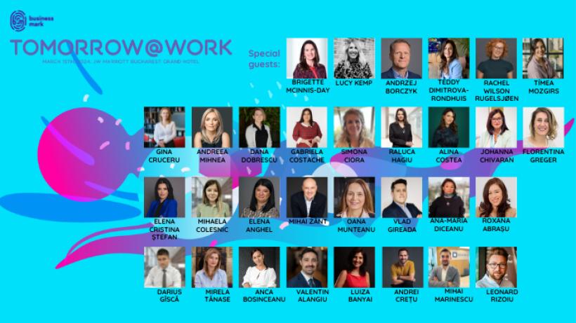 Profesioniștii din departamentul de Resurse Umane sunt așteptați, pe 15 martie 2024, la JW Marriott Bucharest Grand Hotel, unde va avea loc o nouă ediție a conferinței „Tomorrow@work”. În cadrul evenimentului organizat de BusinessMark la București, 31 de speakeri locali și internaționali discută despre un viitor al muncii mai sustenabil, incluziv și orientat spre business, atât din perspectiva departamentului de HR și a organizațiilor, cât și din perspectiva candidaților și angajaților.