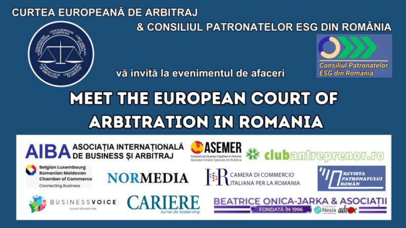 Curtea Europeană de Arbitraj (CEA) împreună cu Consiliul Patronatelor ESG din România (CPESGR), alături de partenerii permanenți ai CEA: Camera de Comerț Belgia-Luxemburg-România-Moldova (BEROCC), Asociația companiilor spaniole din România (ASEMER), Camera de Comerț Italiană pentru România (CCIPR) și-au propus să promoveze arbitrajul comercial ca modalitate alternativă de soluționare a disputelor.