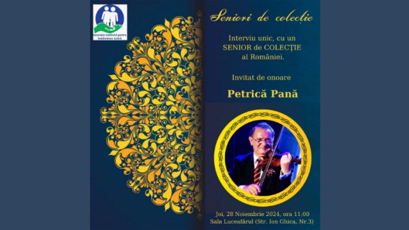 Unul dintre cei mai valoroși violoniști și șefi de orchestră, reprezentant al unei ilustre familii de muzicieni, PETRICĂ PANĂ va fi invitatul de onoare al celeide-a XXV-a ediţii a Galei SENIORI DE COLECȚIE, un eveniment organizat de Asociația Institutul Român pentru Îmbătrânire Activă şi președinta ALEXANDRA DOBRE.