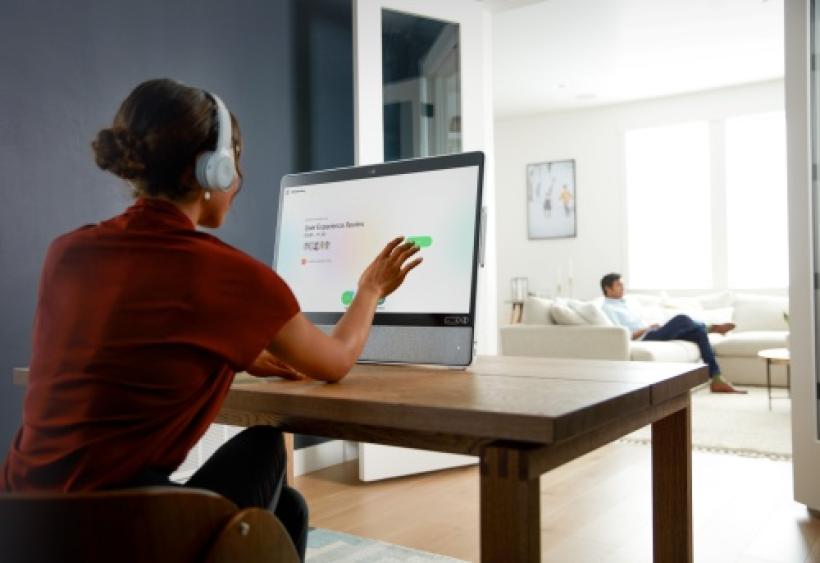 Webex Desk Mini permite utilizatorilor să creeze cu ușurință un spațiu de lucru de oriunde. Dispune de un display interactiv de 1080p și 39,6 cm, cameră HD de 64 de grade, difuzor și microfoane pentru eliminarea zgomotului de fundal. Este portabil și ideal pentru a fi utilizat acasă.