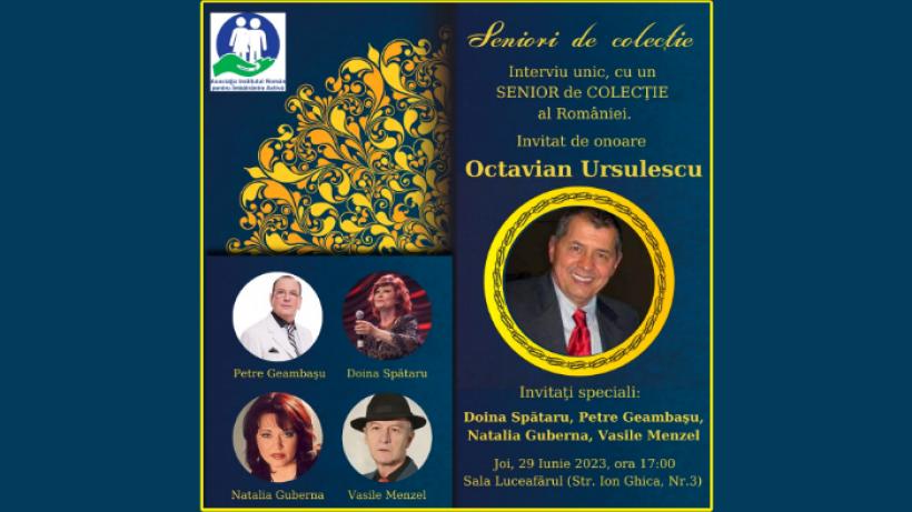 Vă așteptăm așadar Joi 29 iunie 2023, ora 17:00, la Sala LUCEAFĂRUL, la ediția X a Galei ”SENIORI de COLECȚIE”, alături de invitatul special, OCTAVIAN URSULESCU și de cei 4 invitați de onoare ai săi !