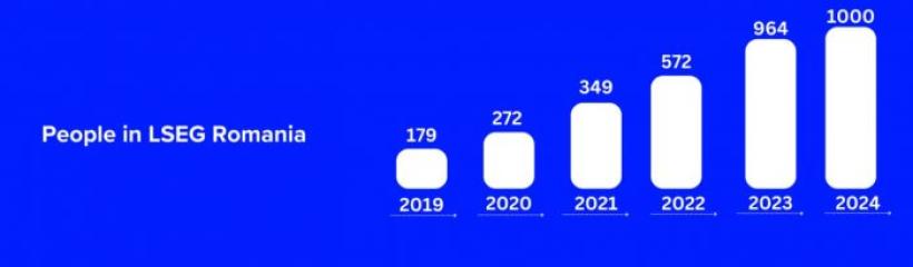 LSEG (London Stock Exchange Group) anunță că Centrul de Tehnologie și Operațiuni din București are acum 1000 de angajați, consolidându-și poziția ca un hub tehnologic important pentru piețele financiare globale.