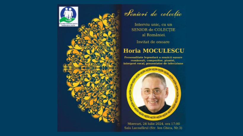 Vă așteptăm așadar miercuri, 24 iulie 2024, ora 17:00, la Sala LUCEAFĂRUL, la ediția a XXI - a Galei ”SENIORI de COLECȚIE”, alături de invitatul special, HORIA MOCULESCU!