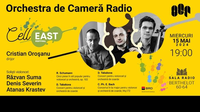 Miercuri, 15 mai 2024 (de la 19.00), ORCHESTRA DE CAMERĂ RADIO vă invită la Sala Radio la un eveniment special: concertul de închidere a Festivalului Internațional „CellEAST”, primul festival de violoncele din România. Cea de-a 3-a ediție a CellEAST Festival se desfășoară în perioada 7-15 mai 2024 în București și Brașov și cuprinde o serie de concerte și recitaluri în care aveți ocazia să ascultați 16 violonceliști de top din România, Austria, Polonia, Bulgaria, Elveția, Japonia și Lituania. Radio România este coproducător al festivalului.