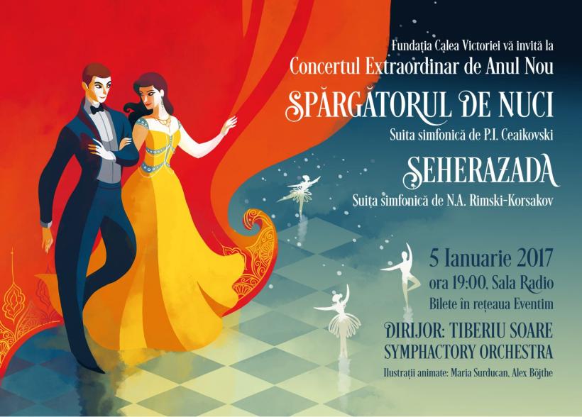 Programul serii include un repertoriu îndrăgit în întreaga lume: suitele “Spărgătorul de nuci” de P. I. Ceaikovski şi “Şeherezada” de N. Rimski-Korsakov. Cele două capodopere, nelipsite din repertoriul marilor orchestre ale lumii, vor încânta în această seară de sărbătoare. Concertul va fi susținut de celebrul dirijor Tiberiu Soare și de Symphactory Orchestra, într-o formulă impresionantă de 72 de muzicieni.