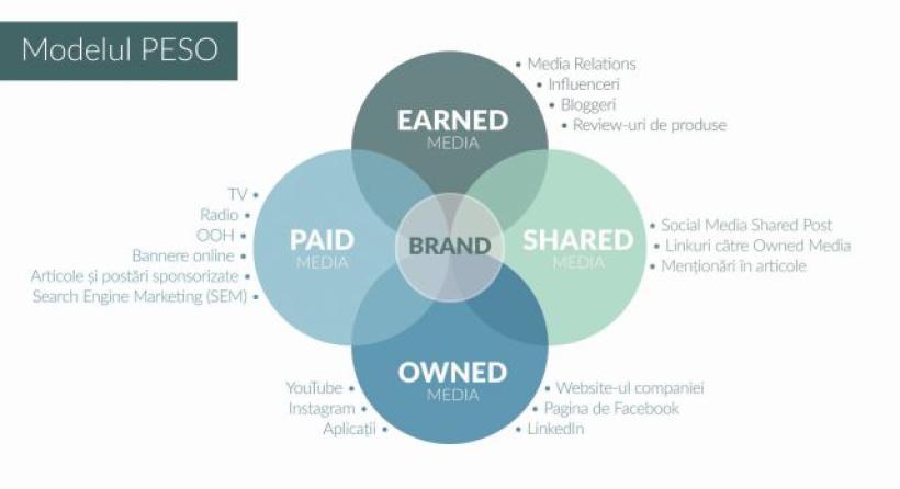 Până nu demult, marketerii luau în considerare doar două tipuri de promovare: advertisingul, în care intrau toate tipurile de promovare plătită, și PR-ul tradițional. În curricula multor facultăți, în cursurile de comunicare, încă se mai păstrează acest tip de clasificare, însă acum a apărut un acronim puternic, care vine în completarea celor două tipuri de comunicare: PESO (vezi infograficul), care se află la intersecția dintre comunicarea digitală și cea din social media.
