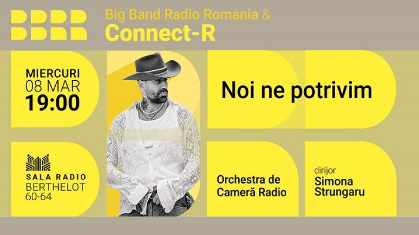Miercuri, 8 martie 2023 (19.00), Ziua Femeii va fi marcată la Sala Radio printr-un concert prezentat de BIG BAND-ul RADIO și invitatul său special: Connect-R. Evenimentul se va derula cu participarea ORCHESTREI DE CAMERĂ RADIO și sub bagheta dirijoarei SIMONA STRUNGARU. Concertul se intitulează Noi ne potrivim, după piesa compusă deConnect-R, care va și deschide evenimentul de la Sala Radio.