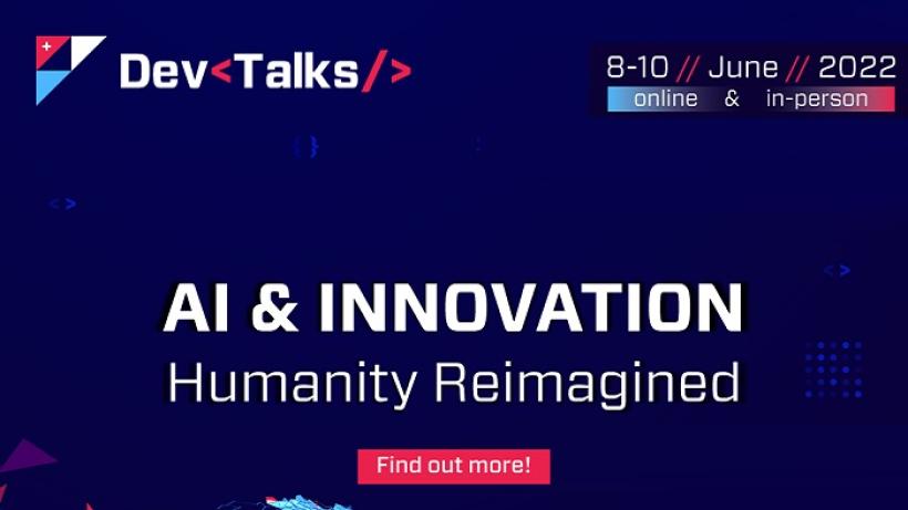 DevTalks Romania, conferința expo pentru dezvoltatorii software și profesioniștii IT din România, revine pe 8-10 iunie 2022 într-un nou format, fizic și online, sub conceptul umbrelă AI & Innovation, Humanity Reimagined. În fiecare dintre cele trei zile ale conferinței, sunt așteptați peste 400 participanți la Globalworth Campus Hall din București. De asemenea, organizatorii estimează că se vor alătura peste 8000 de specialiști și în evenimentul virtual.