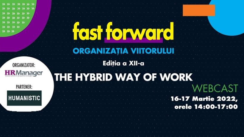 Evenimentul pune sub lumina reflectorului consecințele pe care modul de lucru le-a avut ca impact în acțiunile departamentelor de Resurse Umane. La ce s-a renunțat, ce a apărut nou, ce a necesitat acomodat și ce s-a inițiat, sunt întrebări prin care se trece în revistă efortul de adaptare pe care l-au depus cei care sunt in rolul de partener în business. Cum s-a măsurat impactul, cum s-a lucrat cu scenarii și cum au fost susținuti liderii pentru a lua cele mai bune decizii în ceea ce privește modul de lucru. Sunt întrebări care dau dimensiunea calitativă a acestui efort. Sunt industrii care nu s-au pretat la munca în stil hibrid și unele industrii care de doi ani nu au ieșit din formula de lucru remote. Și oricum ar fi, aceste alegeri nu ne aparțin ci sunt direcții de leadership sau doar politici guvernamentale pe care noi încercăm să le implementăm cu o cât mai mare finețe.Revista HR Manager organizează cu sprijinul Humanistic, în zilele de 16-17 martie 2022, între orele 14:00-17:00, ediția a XII-a din seria de evenimente online FAST FORWARD. ORGANIZAȚIA VIITORULUI cu tema: THE HYBRID WAY OF WORK .
