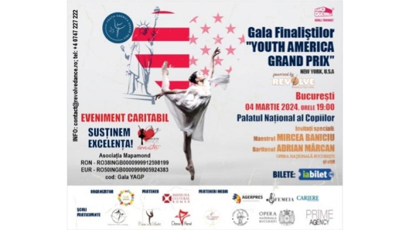 Youth America Grand Prix este cel mai mare concurs de balet din lume care adună anual mii de tineri talentați și ambițioși care doresc să evolueze, să se afrme și să câștige burse de școlarizare internaționalea Există în fecare an semifnale organizate în Europa, Asia și America, iar competiția fnală se desfășoară la New Yorka Tinerii califcați au ocazia, poate unică în viață, să danseze pe scena prestigiosului Teatru eennedy Center din Manhatan în cadrul galei “Stars of today are the stars of tomorrow”a În fecare an, YAGP oferă burse de școlarizare în valoare de sute de mii de euro la care aspira și tinerii balerini românia