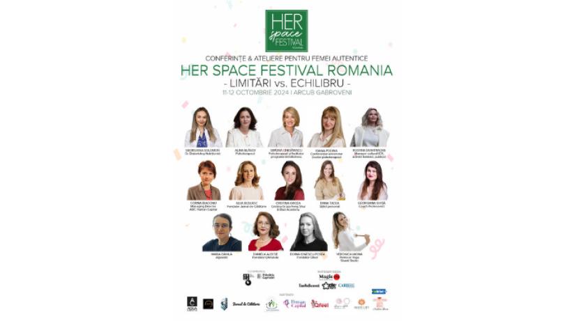 Sărbătorim ceea ce iubim și descoperim noi modalități de a avea grijă de noi și unii de alții la cel mai frumos festival al toamnei, HER SPACE FESTIVAL ROMANIA. Festivalul, cel mai important eveniment dedicat sănătății, explorării stării de bine și stilului de viață autentic al femeilor din România, are loc în perioada 11-12 octombrie, la ARCUB Gabroveni.