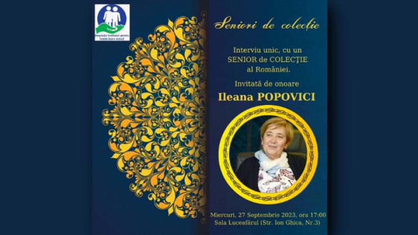 Excelentă actriță de film, cântăreață cu o voce remarcabilă (deși a absolvit Conservatorul ”Ciprian Porumbescu”, clasa ”Vioară”) și unul dintre cei mai buni ilustratori muzicali ai Televiziunii Române, dar și ai Lotului Național de Gimnastică artistică și ritmică al României (1984 - 1994), ILEANA POPOVICI este invitata de onoare a celei de-a XII-a ediții a Galei ”SENIORI de COLECȚIE” devenită tradiție și organizată de Asociația Institutul Național pentru Îmbătrânire Activă, condusă de Alexandra Dobre, Președinte.