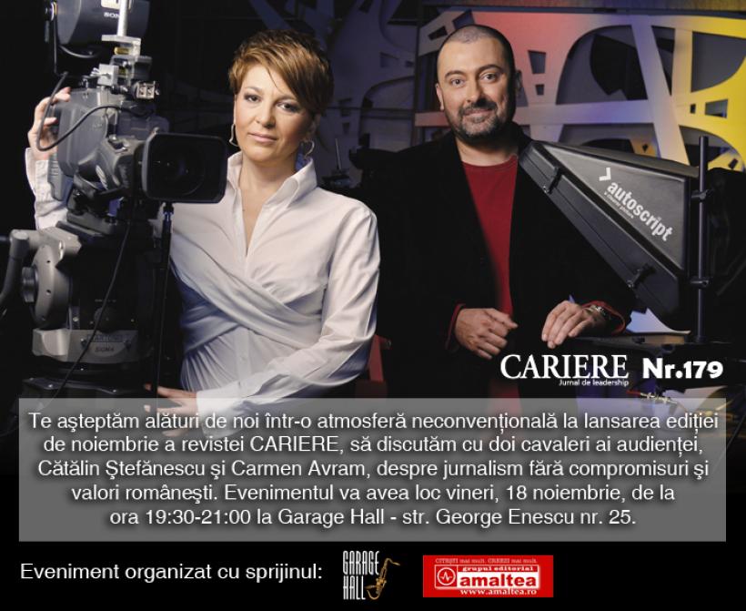 Am ales doi cavaleri singuratici ai audienţei, pe Carmen Avram şi Cătălin Ştefănescu şi i-am invitat să intre în dialog cu noi pe tema: Care este preţul şi recompensa unui job fără compromisuri.