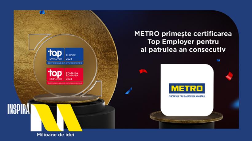 METRO, unul dintre liderii pieței locale de wholesale, primește în 2024, pentru al patrulea an consecutiv, certificarea Top Employer în România și Europa. Această certificare, acordată de autoritatea globală Institutul Top Employers, este o recunoaștere a devotamentului și implicării unei organizații în piața muncii, prin politici și practici excelente de resurse umane.
